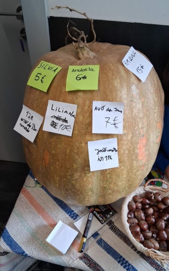 Na entrada da feira houve o leilão de uma abóbora gigante. Depois, foram vendidos todos os produtos nas bancas. Havia também café e bolinhos para os visitantes e foram oferecidas castanhas, pois era o dia de São Martinho.
