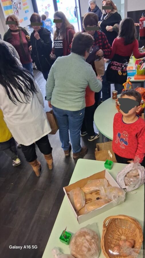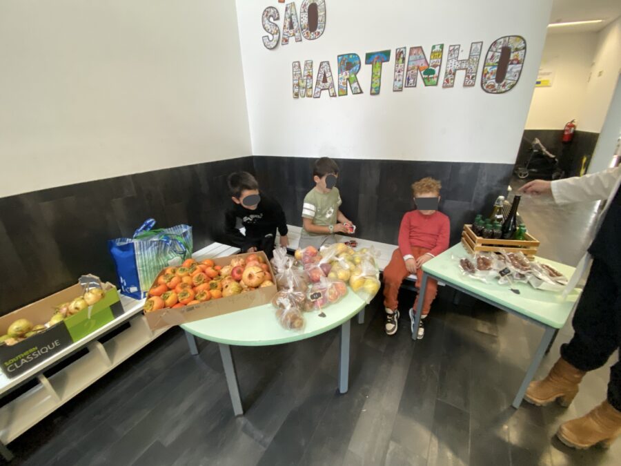 As famílias ajudaram trazendo produtos como frutas, pão, chouriços, bolos, doces, mel, azeite, ovos e outros produtos da horta.