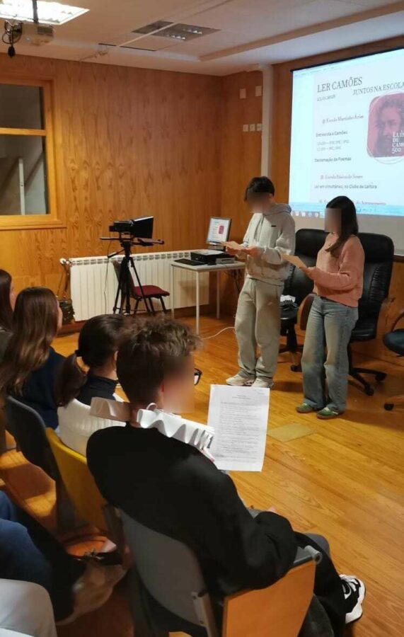 Neste âmbito, decorreram 2 sessões, envolvendo as 5 turmas do 9º ano e respetivas professoras de Português.