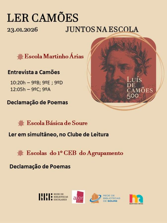 No dia 23 de janeiro comemorou-se no Agrupamento o nascimento do grande poeta Luís de Camões. No auditório da Escola Secundária decorreu a atividade Ler Camões Juntos na Escola, organizada pela Biblioteca Escolar.