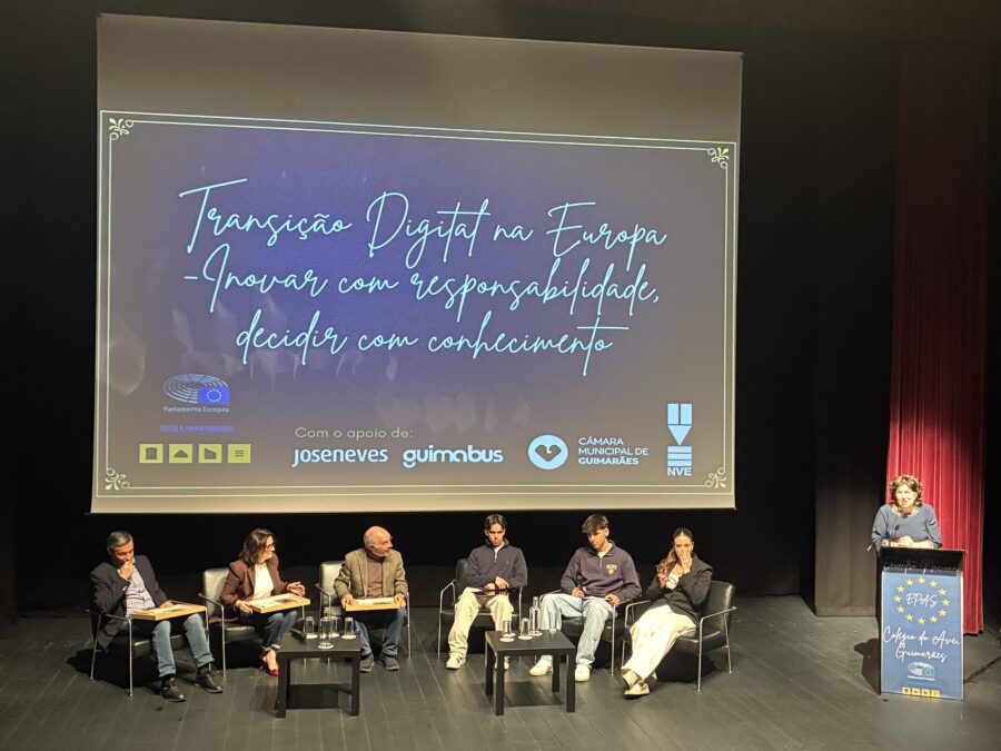 Estratégia Digital e Debate Durante a tarde, os participantes envolveram-se na tertúlia “Transição Digital na Europa”, sob o mote “Inovar com responsabilidade, decidir com conhecimento”. Em contexto de trabalho colaborativo, com alunos de todo o país, foram debatidos temas centrais como os desafios tecnológicos e a importância da literacia digital no espaço europeu.