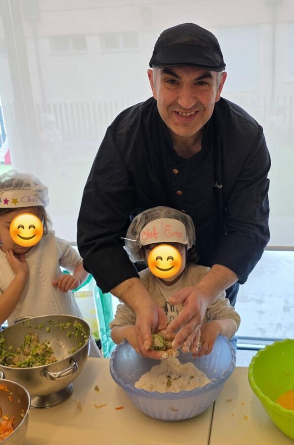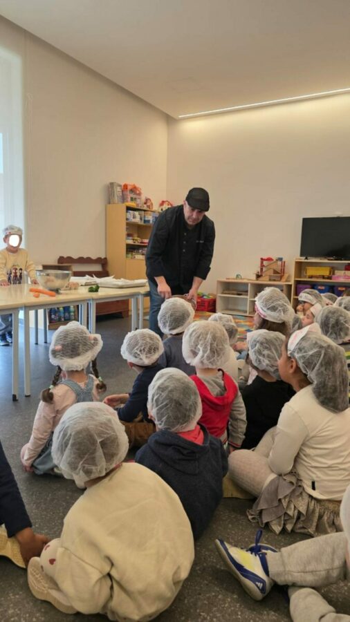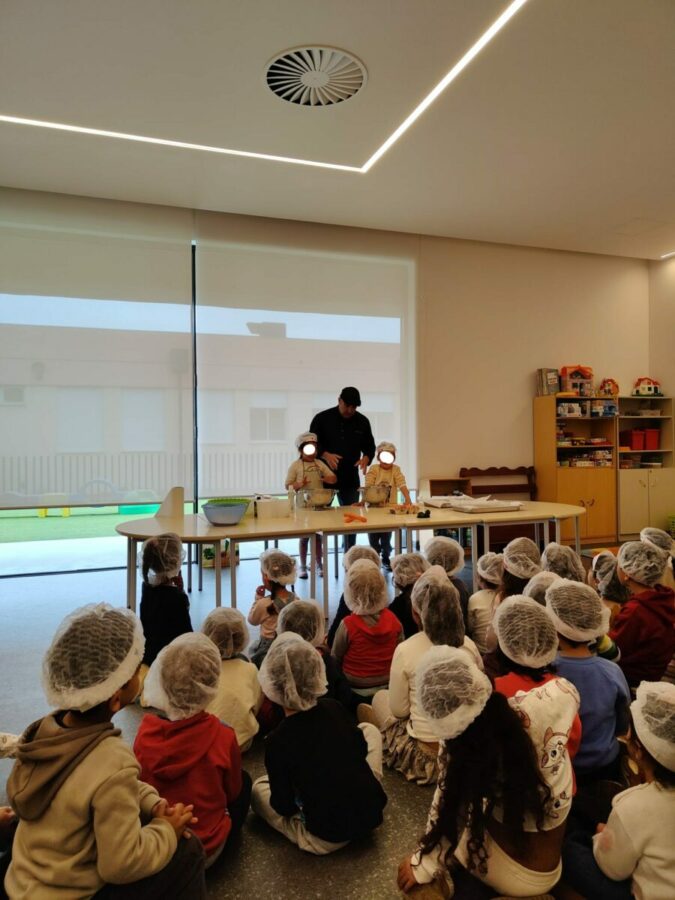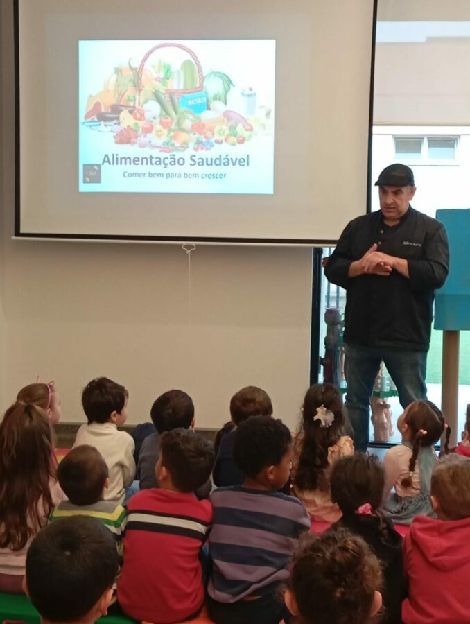 A atividade teve início com uma breve apresentação do Chef sobre o seu trabalho, explicando onde exerce a sua profissão e como decorre o dia a dia numa cozinha profissional. Ao longo da sessão, interagiu com todos com grande profissionalismo, demonstrando conhecimento, simpatia e uma notável proximidade com as crianças.