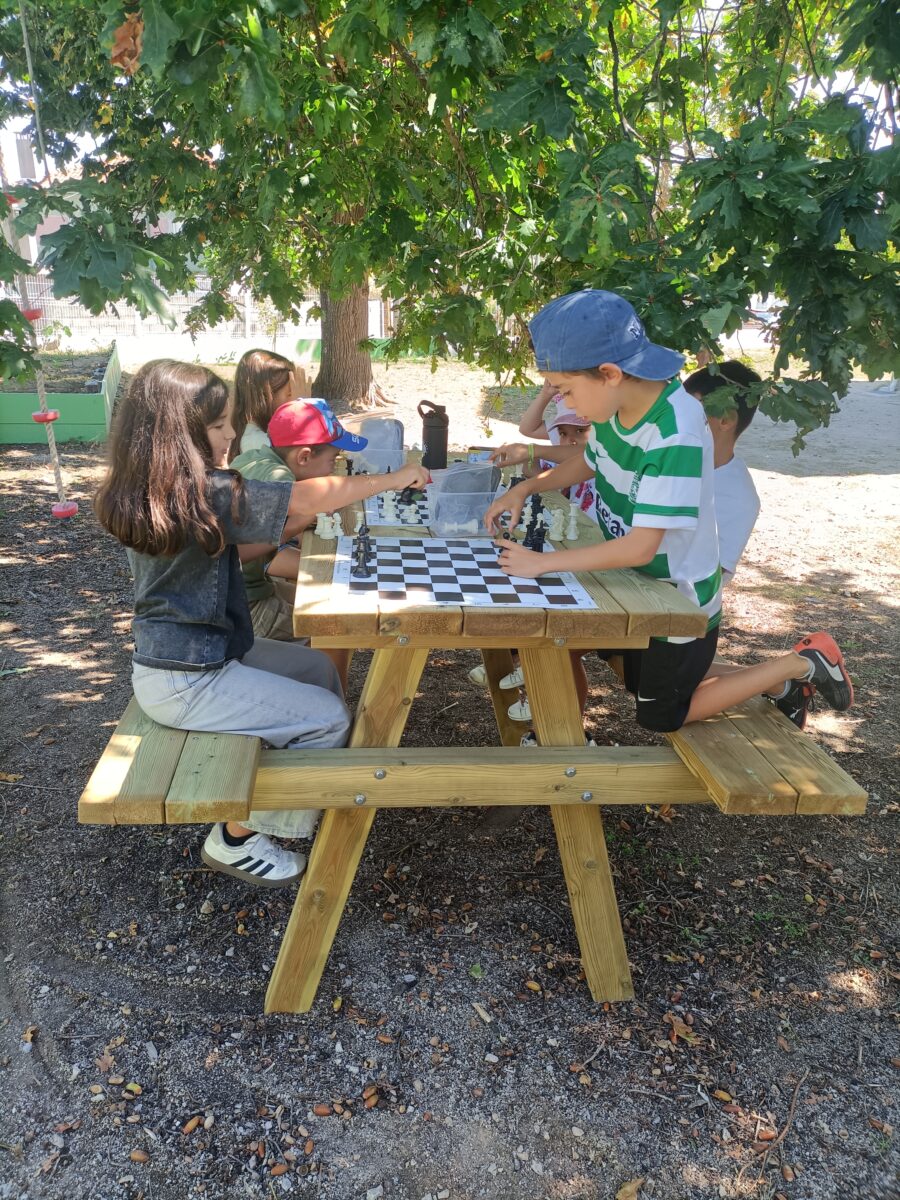 Xadrez ao ar livre, a brincar também se aprende, e muito! Com o Verão prolongado que tivemos, e a mesa que o Dr. Gil Soares “Xadrez ao Ar Livre”
